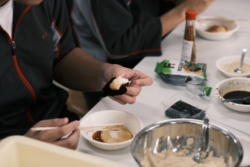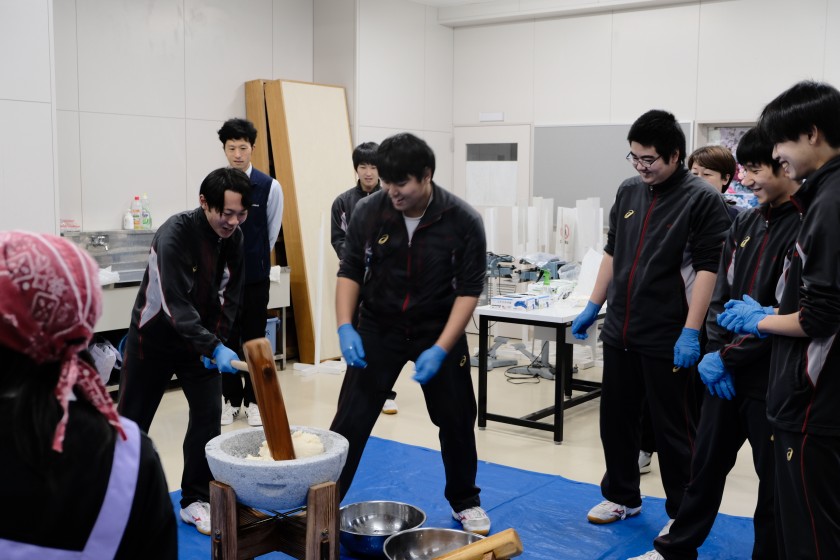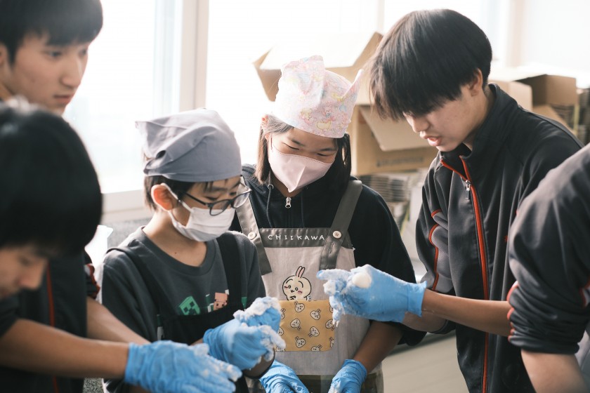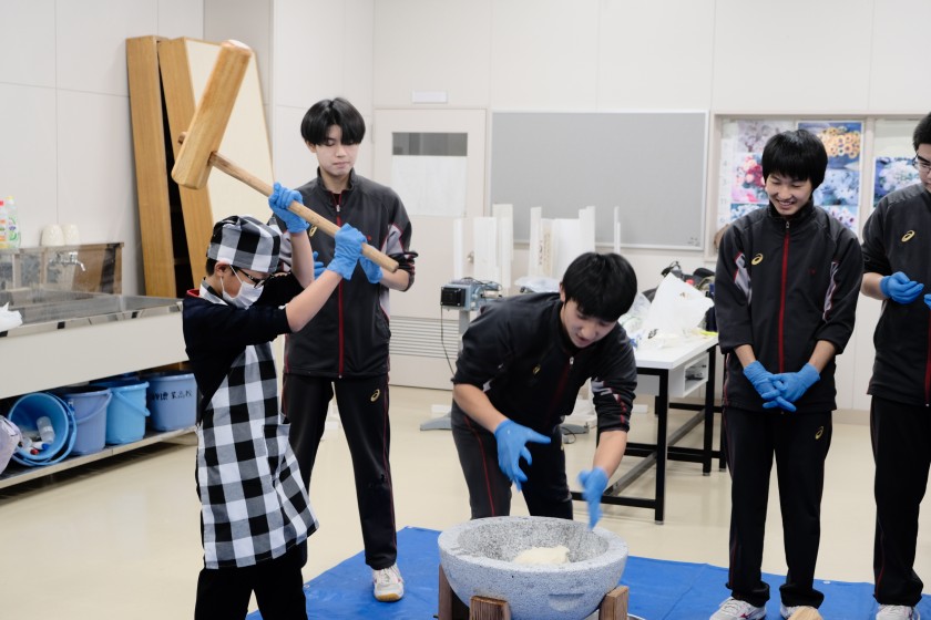 春に田植えをし秋に稲刈りを行った、遠別農業高校2年生と遠別小学校5年生。収穫した「風の子もち」で餅つき交流が実施されました。