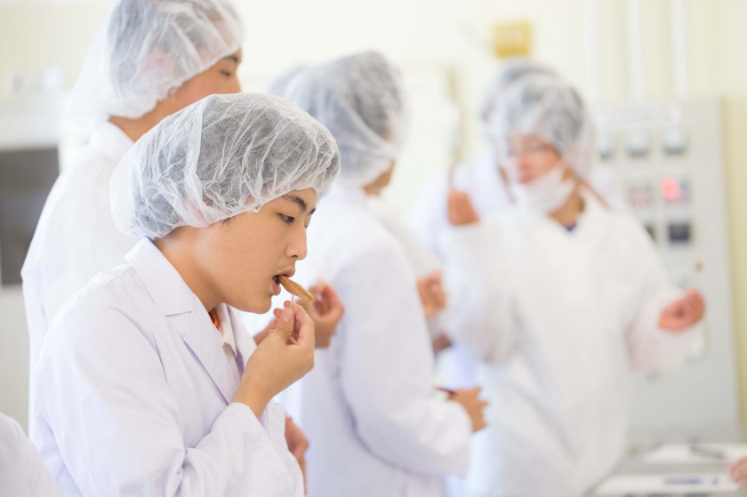真剣に話を聞く生徒の皆さん。注意事項が終了し試食がスタート。
