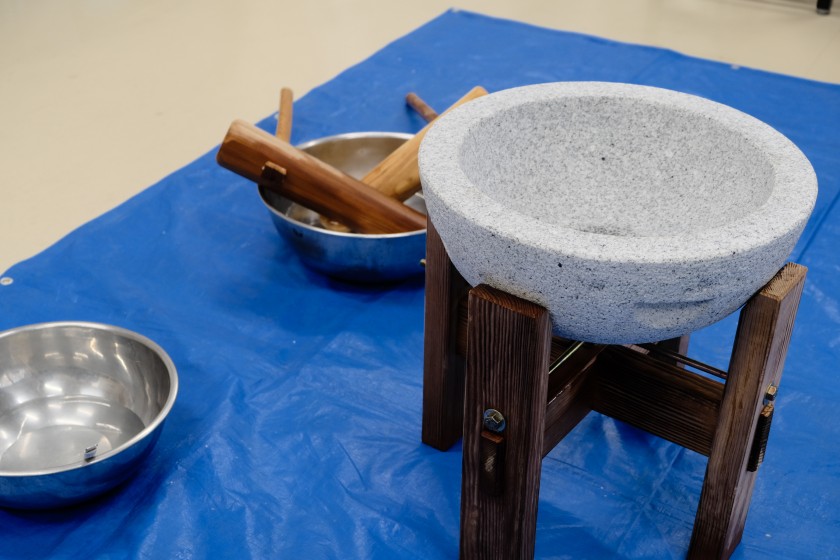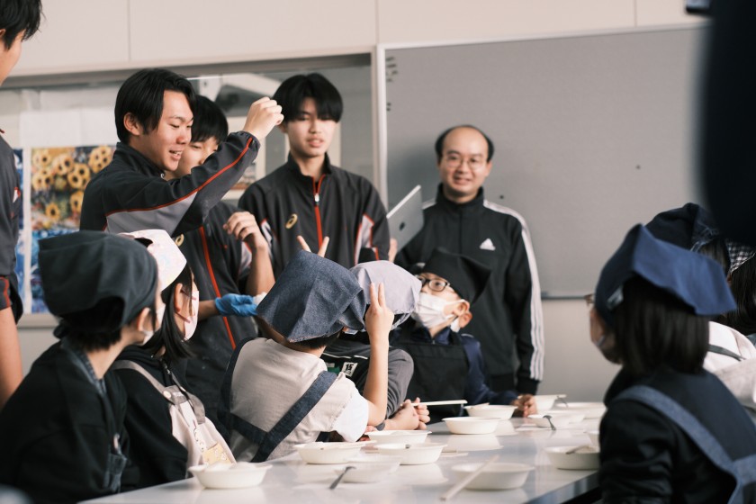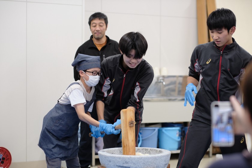 春に田植えをし秋に稲刈りを行った、遠別農業高校2年生と遠別小学校5年生。収穫した「風の子もち」で餅つき交流が実施されました。